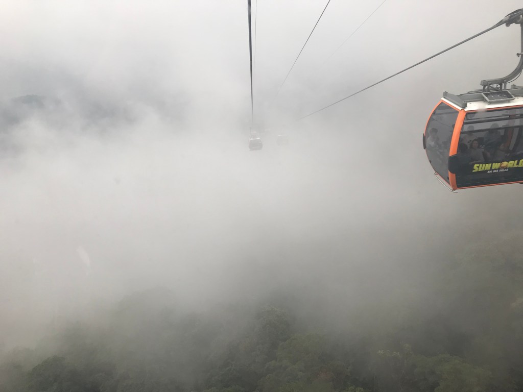 At arrival, around 7am, we bought our admission tickets and took our cable car ride up into the Ba Na Hills. Queue Jurassic Park music guys because this was nuts, like to me, borderline more fun then the bridge. For 15-20 minutes you coast along a cable car system that happens to be one of the top ten in the world. Winding your way through the Ba Na hills you are taking are taken 5,000 feet up into Sun Land. Sometimes, you traveled 1,000 feet above the ground with sweeping views of the countryside; others breathtakingly engulfed you in cloud cover, which completely throws the senses. After hopping off your cable car the first attraction is the Golden Bridge. Hands cut out of stone, hold a bridge laden in gold, set in the clouds, looking out in the valley. The photos don’t do it justice. Even at 7:30am, some 30 minutes after opening, there were people all along the bridge. According to one solo traveler needing someone to take his picture, he was on the first car to the top; “folks were literally running to the bridge, peeling off clothes as they went,” to “do it for the gram.”