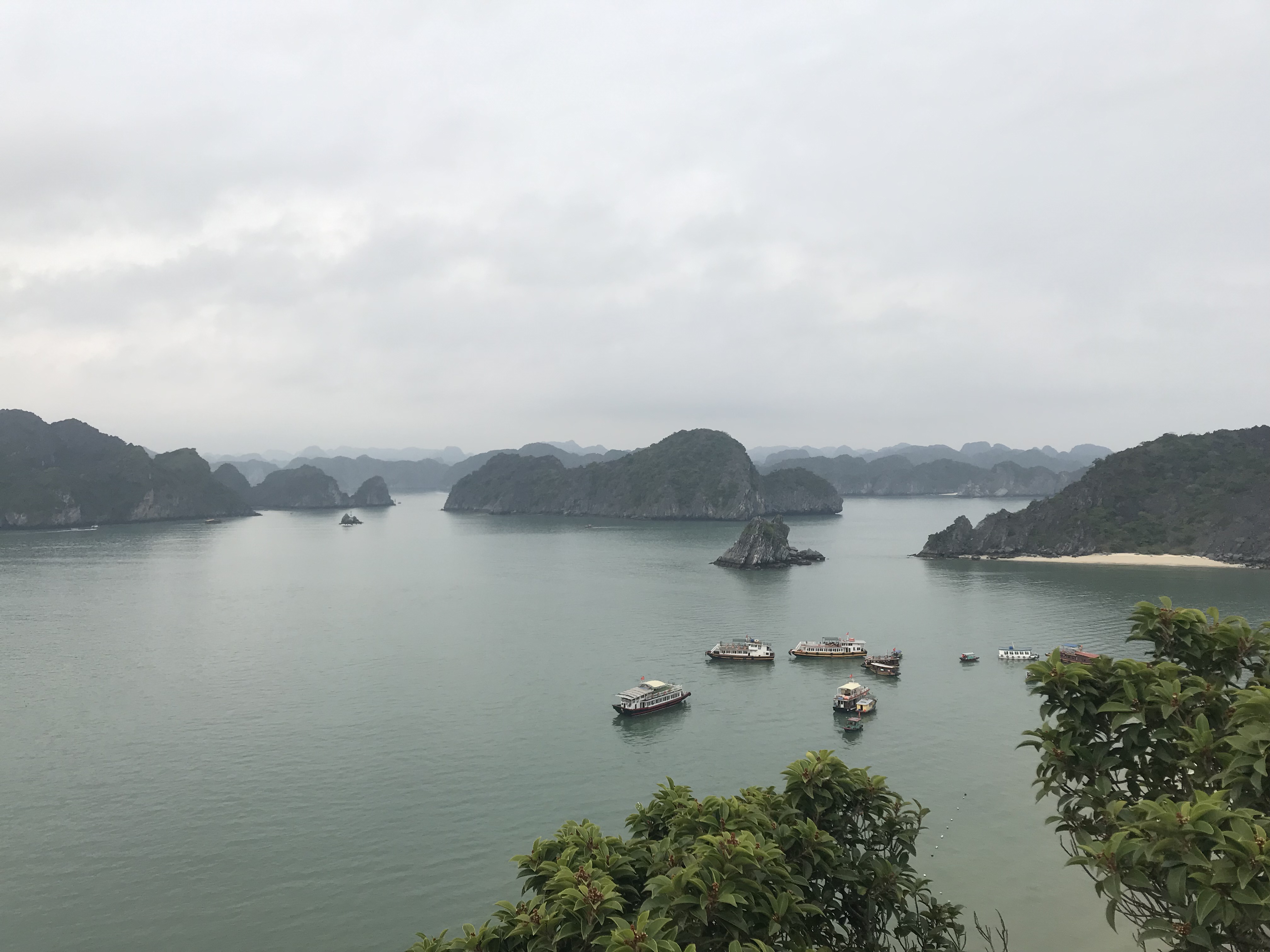 After our adventure that never was in Phong Nha, we tracked back to Dong Hoi sharing dinner with a fellow traveler and public bus mate. We swapped stories and learned about different locations both behind, and in front of our travels. After a long wait at the Hoang Long bus station we hopped on the overnight bus to Hai Phong. Fyi, don’t use Hoang Long if you are ever in SE Asia; their sleeper buses are permanently reclined. Hopping into our too short top bunks we uncomfortably drifted off to sleep. The bus dropped us on the side of the highway, and a quick Grab brought us to our ferry out to Cat Ba island. Ha Long Bay is one of the most iconic sites in Vietnam, but that unfortunately means that there is a ton of tourists and too much traffic. At the suggestion from one of our hosts in Vietnam, we stayed up on Cat Ba island because it was a little more laid back and you could still see all the beauties of Ha Long bay without having to fit it into one day trip. We couldn’t agree more, if you want to appreciate the beautiful limestone islands that jut out of the ocean but want to do it on a budget, Cat Ba is your place. The food was fantastic in the city, plenty of vegan options for Mandy, and all pretty cheap.
