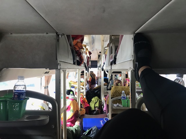 We booked a bus out off Hanoi through an online booking company called 12GoAsia who we had used several times before in Vietnam with no issue. Instructions were sent via email telling us to go to counter 57 at the Hanoi Bus Station where we would be handed our ticket and board our bus. We arrived early, roughly an hour and a half before our bus was scheduled to leave. The girl at the counter was the only one of the other 100 counters that wasn’t banging on the window asking me to come over to them. As I arrived at the counter and showed her our booking on my phone, she called someone, confirmed our booking, and sent us out to wait by the bus with our tickets in hand. The bus operations in Vietnam are very much cargo orientated, meaning that for the next hour and a half we watched our bus get loaded to the gills with various cargo; live chickens, food, local luggage, etc. Finally, as the time for our bus to leave had come and gone, we approached one of the gentlemen in the orange shirts who seemed to oversee what was going into the bus with our bags, asking him to load them. He was very non-committal, but eventually shoved our bags into a tight spot next to some live chickens in a box. We boarded the bus with some fellow travelers and were squeezed into the back undercarriage which had 3 reclined seats all next to each other with a low ceiling. Although they had a little more leg room, we would recommend taking a seat that is all your own as it was a little uncomfortable to share with a stranger. Our bus departed around 5:45pm and arrived at the Cau Treo Border Pass at roughly 3am. We figured we would take off from there and head out into Laos but instead the bus turned off and we had to wait until the border crossing opened at 7am. Knowing that we would have booked a later bus so we could have enjoyed a more complete day in Hanoi.