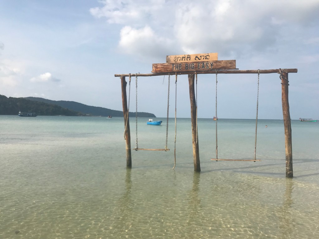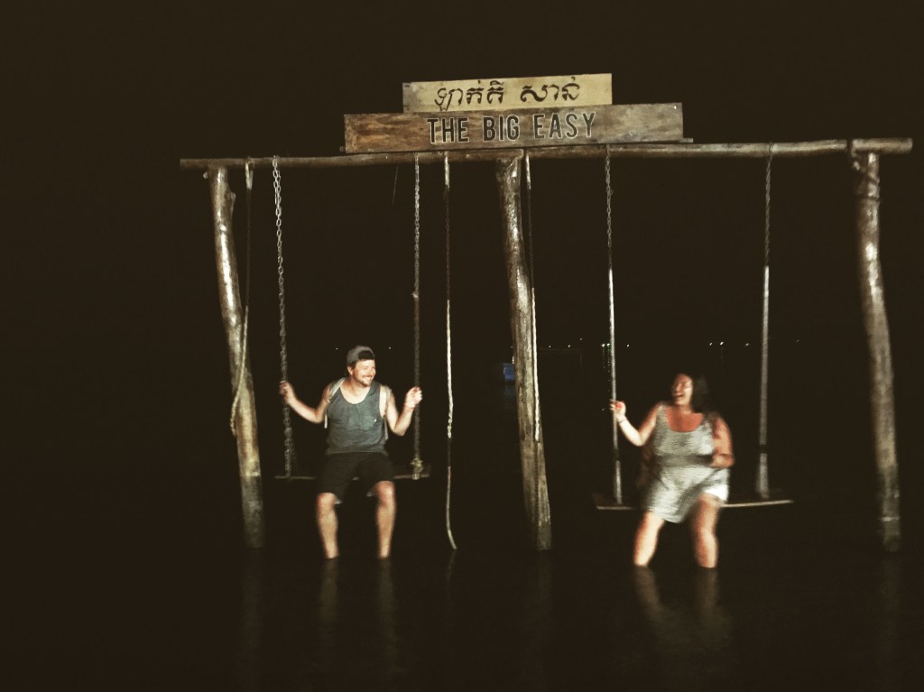 Another side effect is tourism on the islands is slowing as well because of the negative aspects of the development going on in Sihanoukville. Which depending on how you look at it could be a good thing or a bad thing. It is a hit to the local businesses on the islands which is a shame, but for a traveler looking to enjoy some paradise without too many tourists it is great. These islands are truly a wonder, in fact Mandy and I agreed this was the best beach we have ever been to. We have been to the Caribbean, Cabo San Lucas, Costa Rica, Cozumel, which all have great beaches so that is saying something. We stayed in Saracen Bay which is lined with hostels and restaurants. At night there are fire shows and plenty of live music. Swinging in the swings out over the ocean at night was a very fun night!
