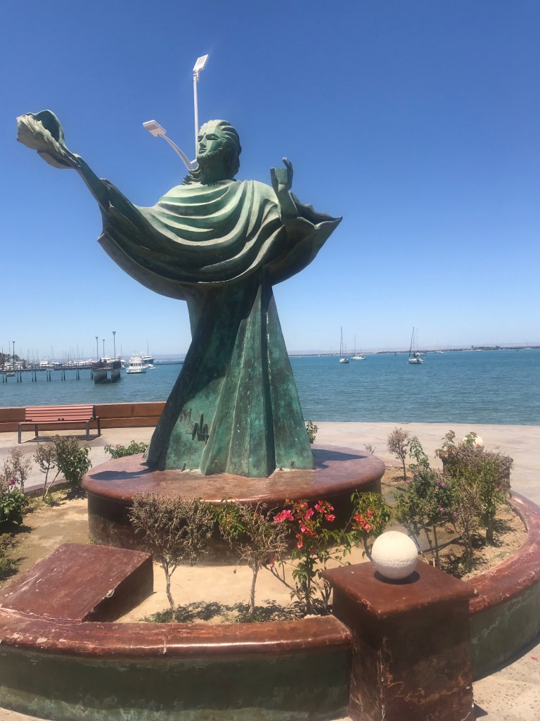 Eager to explore the city, we dropped our bags and headed out to the Malecon of La Paz. I had never heard of a Malecon before the start of our trip in Mexico but every town along the coast we have gone to since has one. Essentially it is a long stretch of paved walkway that goes along the sea. Roller-bladers, skate boarders, walkers, runners, and bicyclists cruise along the Malecon past a whole host of unique statues and the sign which displays in boldly colored letters the name of the town you are in. We walked up and down the Malecon and caught a beautiful sunset. We can see why this town is a major Mexican tourist destination.