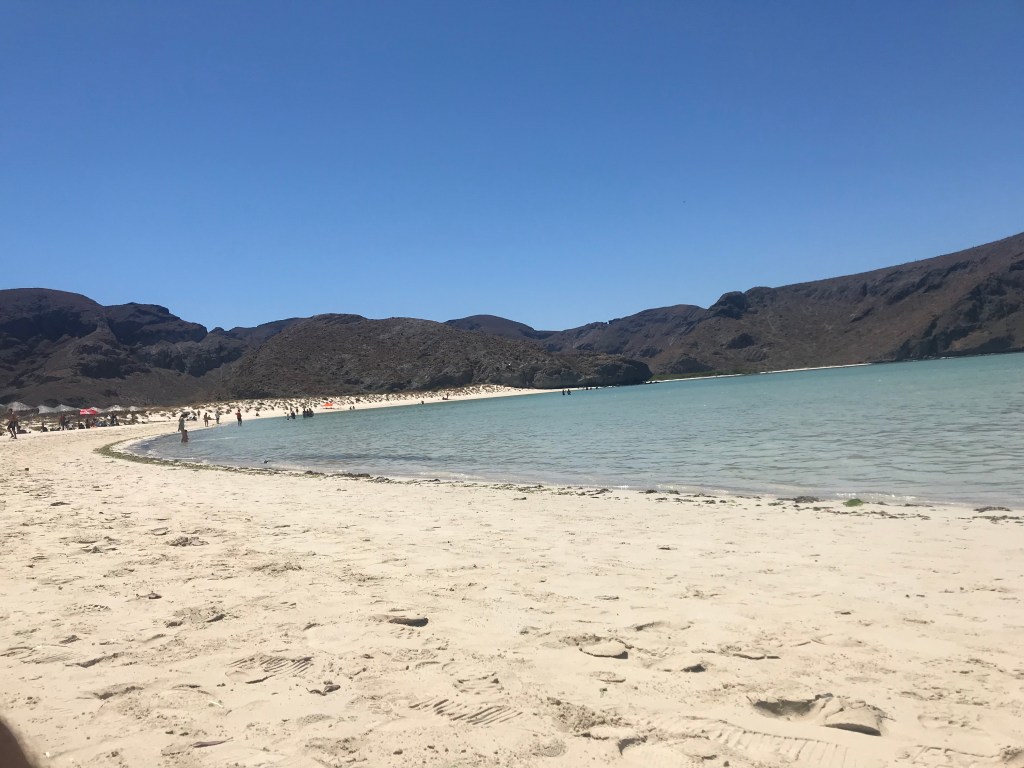 A short bus ride to the north of La Paz is a magical beach called Balandra Bay. White sand beach lines the bay that has ankle deep water for hundreds of feet, so shallow you can very nearly walk across the bay without having to swim. Mandy and I are suckers for a beach, so we had to go check it out after seeing some of the pictures online. Aside from the bus not picking us up where we were dropped off (FYI for anyone going here you need to walk up to the main road out of the parking lot for pick up) the whole experience was just what you are looking for out of a beach day. We rented an umbrella for 200 pesos and read our books by the beach packed with Mexican vacationers and locals alike.