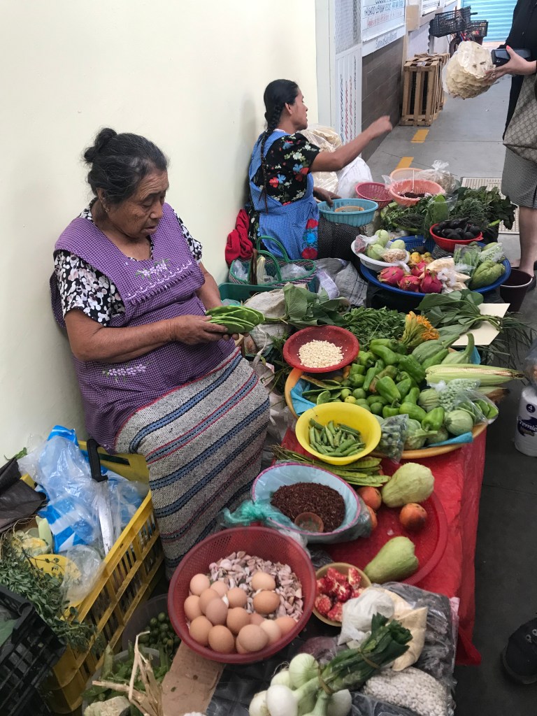 Shopping at the local market for our vegan mole
