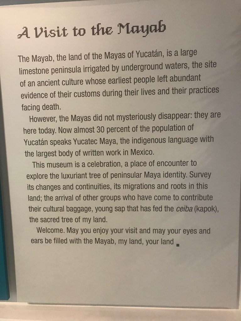 We also visited the Gran Museo de Mundo Maya which offered some very cool history about the Mayan people and truly put some of our misconceptions about the people to rest. For one, it is often said that the Mayan people mysteriously disappeared after their rise to power. That is untrue as there is a documented decline in the overall Mayan population, but it can be attributed to a whole host of societal, militaristic, and economic factors. Another misconception is the Mayan people were star gazers who avoided war. That also is incorrect as evidenced by the many statues and carvings which detailed the capture of slaves and great war heroes of the Mayan past. I think the most surprising fact that I learned was the ancient Mayan language has been translated into a whole host of languages and 30% of the population speaks Yucatec Maya to this day. The Mayans didn’t disappear, they are still living on the same land as their ancestors.
